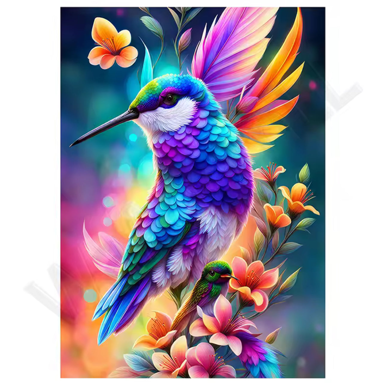Quadro Beija-flor Tropical – brilho ponto 30x40cm | DIY Arte Brilhante