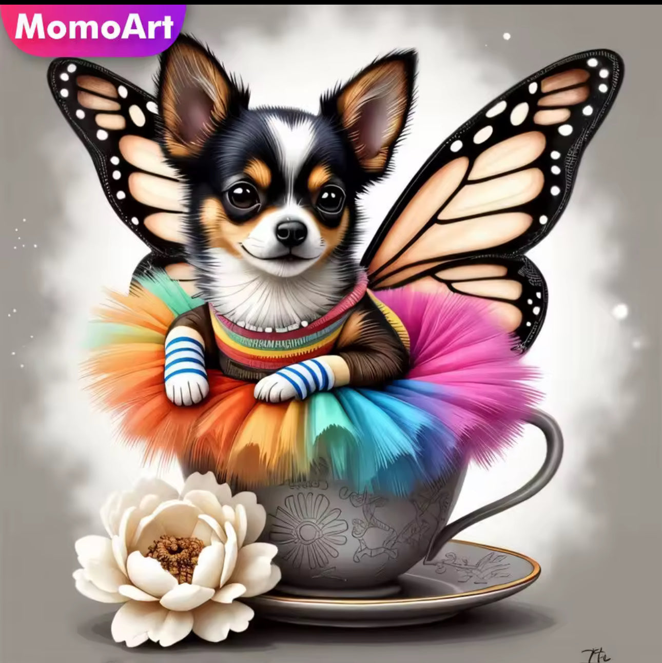 Quadro Cachorrinho Borboleta – Pintura Diamante 30x30cm | Arte DIY com Strass